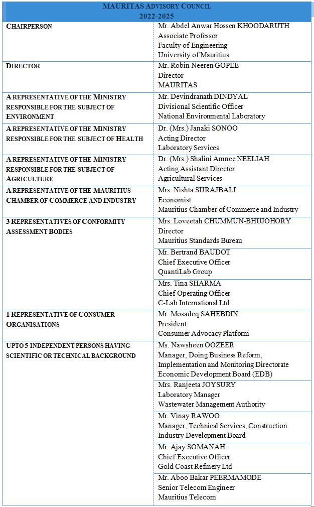 MAURITAS ADVISORY COUNCIL Introduction The Mauritius Advisory Council (MAC) was set up, following the proclamation of the MAURITAS Act, in August 1999, and held its first meeting in September 1999. The Council is expected to meet at least 3 times yearly. The MAC has been reconstituted on 1 July 2022 under the chairmanship of Dr A.A.H Khoodaruth. Duties of the Council The Council shall (a) advise the Minister on all matters